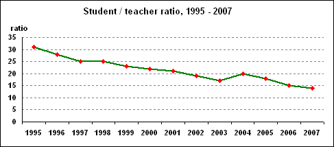 | Student/Teacher Ratio | - | 31 | 28 | 25 | 25 | 23 | 22 | 21 | 19 | 17 | 20 | 18 | 15 | 14 | |||||||||||||||||||||||||||
