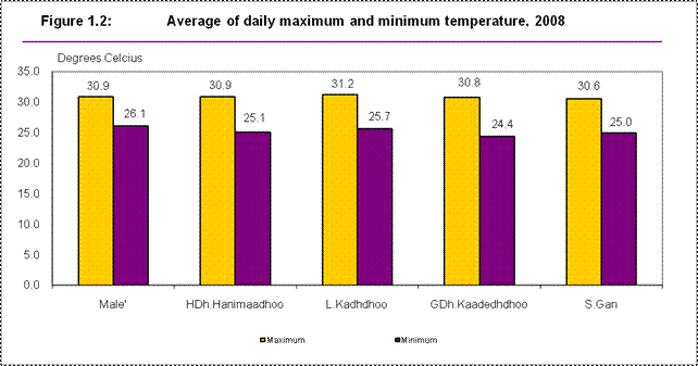 | Table 1.2 : AVERAGE OF DAILY MAXIMUM AND MINIMUM TEMPERATURE ,